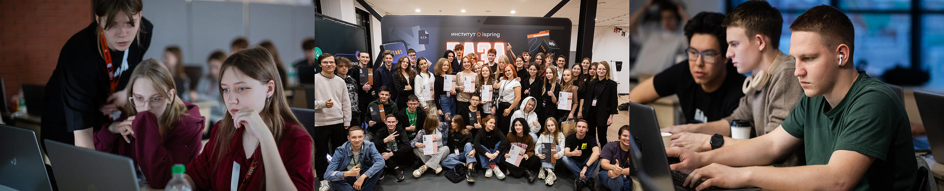 - ИТ‑БАЗА. Полное погружение в профессию на 3 дня в офисе ИТ‑компании iSpring. Ты почувствуешь себя настоящим специалистом, познакомишься с нашим форматом обучения, а главное — на практике до поступления убедишься, что не ошибся при выборе направления обучения.